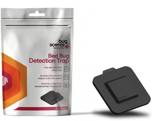BugScents est un piège contre les punaises de lit réutilisable avec un leurre et d’une plaque de glu qui permet de capturer les punaises de lit en 24 heures.